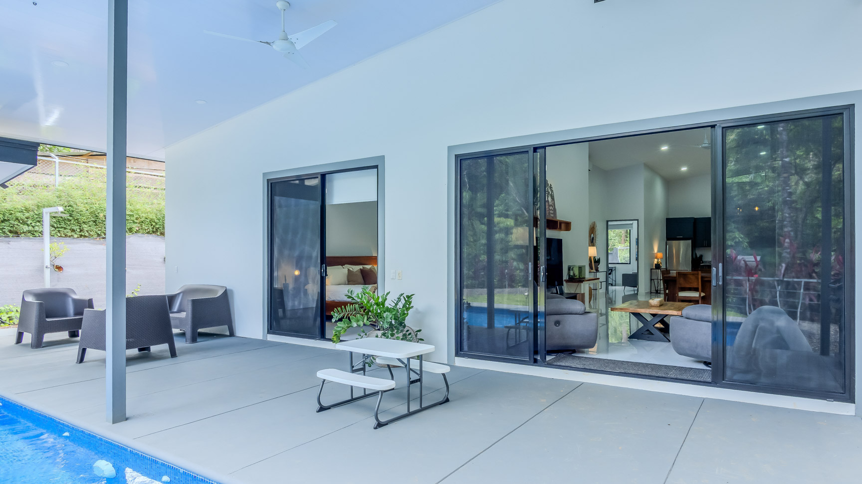 Jungle-Immersed Modern Retreat with Riverfront, Pool, and Expansion Potential in Cinco Ventanas